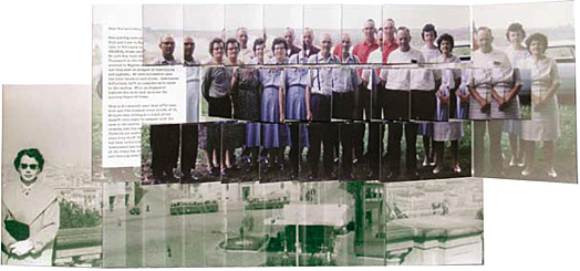 "The flag book, like other dynamic book structures, has the unfortunate potential to overwhelm content and artistic intent. Not so for Karen Hanmer’s flag book Letter Home. Here the book’s structure and its exterior and interior environments are fully integrated with content to embody and illuminate meaning. Using family photographs and dual, private voices – a letter to family and an interior commentary – Hanmer creates a visual narrative/diorama of Midwestern roots, geographic displacement, familial relationships, personal and interpersonal anxieties, and 1950’s cultural transition. The work evokes emotions of longing and loss without being sentimental, as well as hope for the future that is flavored with Midwestern pragmatism. The revelatory quality of Hanmer’s flag book is quite appropriate to its content, creating a satisfying and multi-layered experience for the viewer." -- Max Yela, Head, Special Collections, University of Wisconsin Milwaukee. Pigment inkjet prints, fully open size 8” x 19” x 3”. Edition of 20, $500. Last Copy.